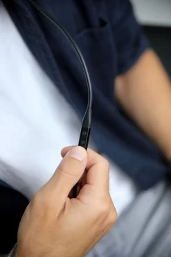 Selected materials make the PRO X USB-C cable ideal to complement the PRO X or PRO headphones with a 3-pin mini XLR connection. The 1.6 metre cable can be locked to the headphone housing. The remote control and the condenser micorphone are integrated in a durable aluminium housing. The IP65 certification also confirms protection against splash water.