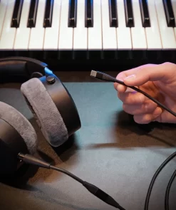 The integrated Digital-to-Analogue converter (DAC) makes it possible to change between different end devices while maintaining a consistently high audio quality. The integrated microphone allows using the headphones for phone calls. The volume or playback of tracks can intuitively be controlled via the integrated remote control.