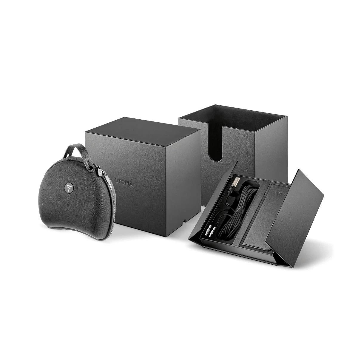 Utopia is made from premium, sophisticated materials. The new yoke, made from forged, recycled carbon, is an elegant touch, whilst making the headphones more lightweight and distributing their weight more evenly. The genuine leather headband and perforated memory foam earcups— also leather-bound — provide unparalleled comfort and softness. And finally, exceptional headphones merit top of the range accessories: Utopia comes in faux-leather packaging with a black fabric thermoformed carrying case and two high-fidelity cables (10ft and 5ft / 3m and 1.5m) for using the headphones at home with an amplifier or on the go with Lemo® connectors and a Jack adapter.